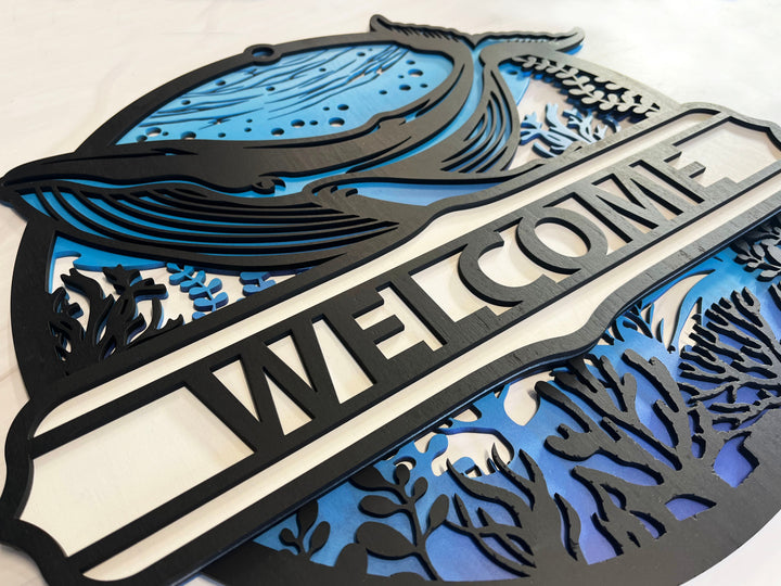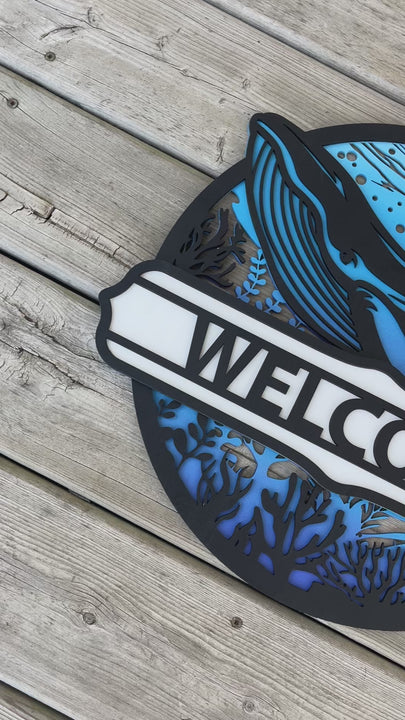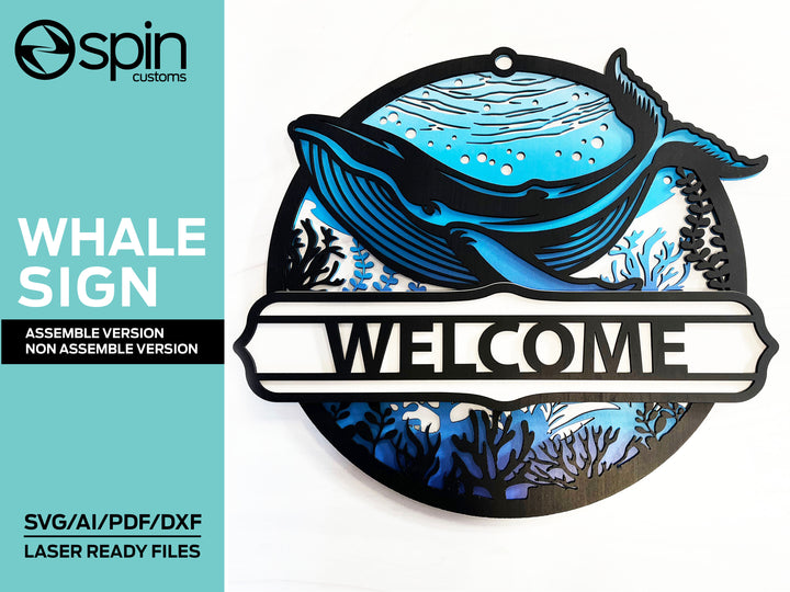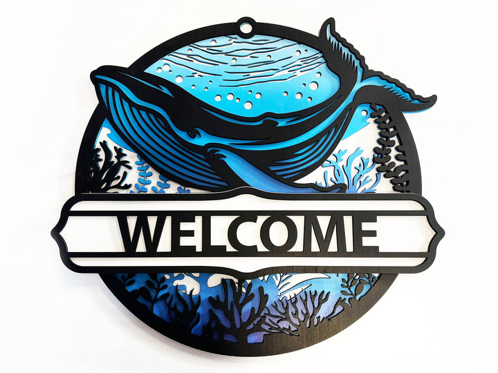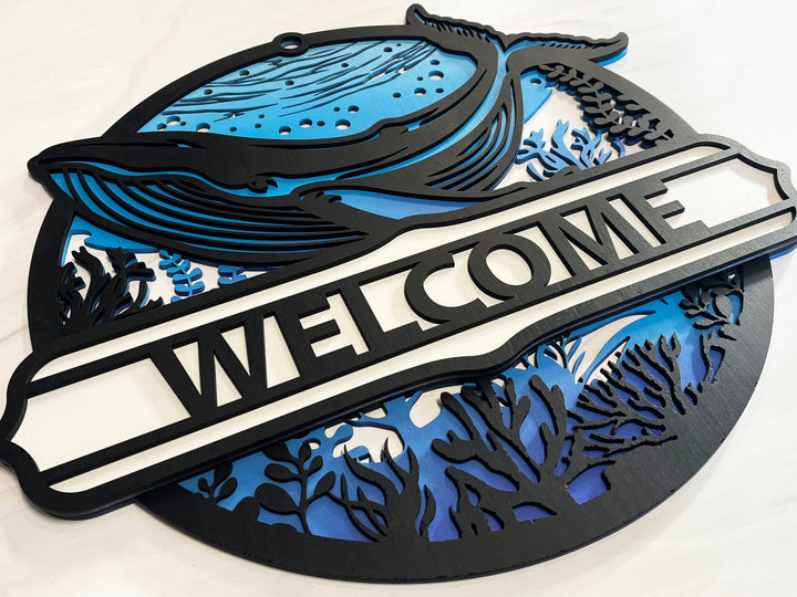 Blue Whale Welcome Sign - Layered Assemble and Non Assemble