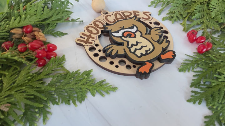 Cheeky Owl "HOO CARES" Ornament - Laser Ready File - All Lasers - One File