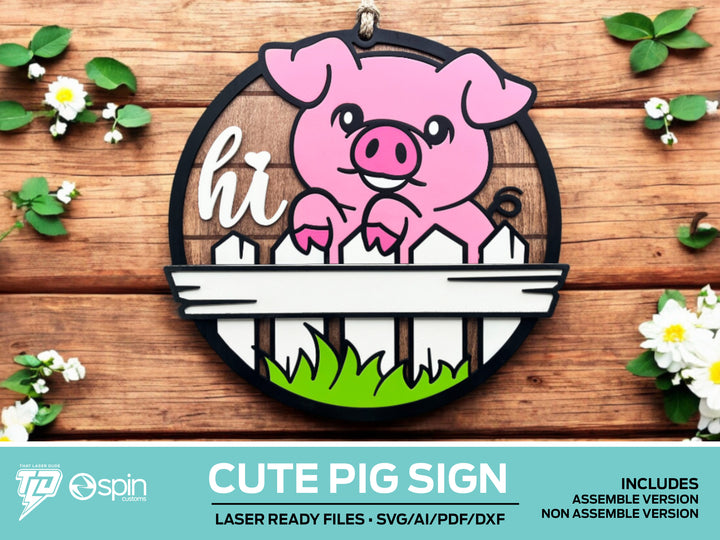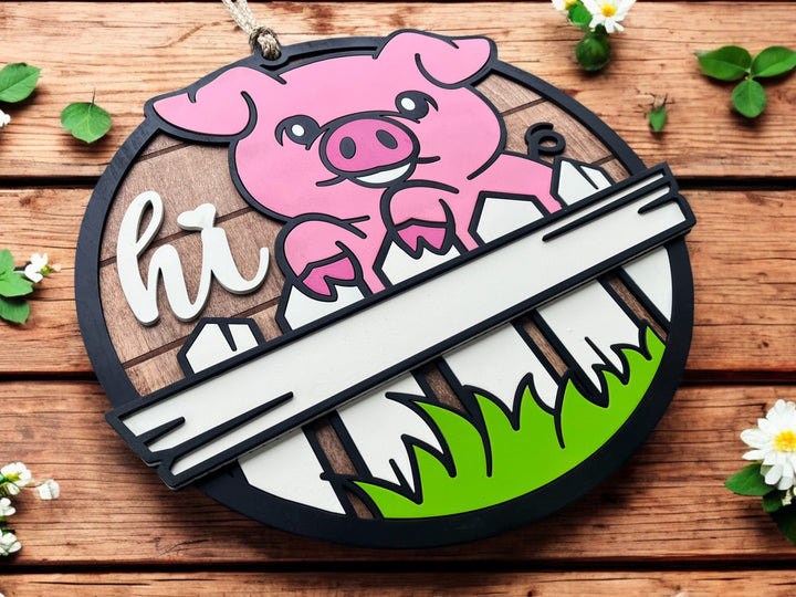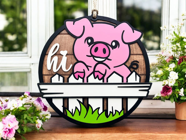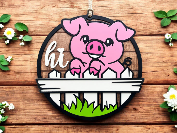 Cute Pig On Fence Sign - Layered Assemble and Non Assemble