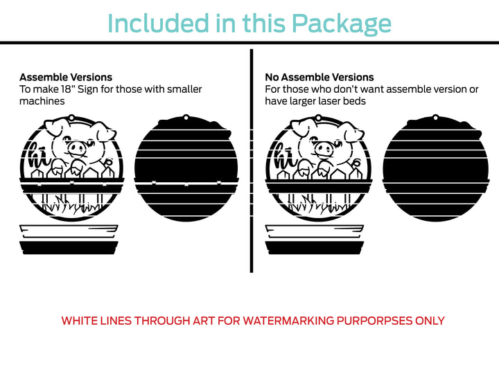 This is a fun and cute welcome sign featuring a Pig on a fence. It also comes with an assemble version designed to fit on smaller laser beds like Glowforge to print a larger sign. All seams are hidden and the final piece is strong. Non Assembly version also included for those with larger lasers or pass-through. Please read the READ ME FILE.