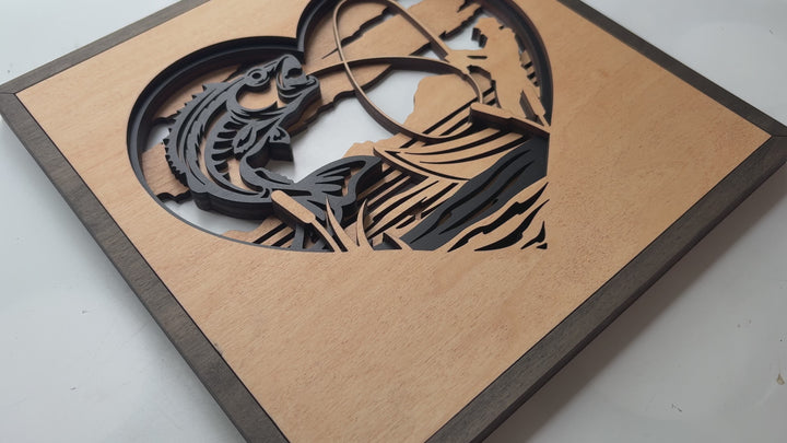 Fishing "Heart" Layered Sign - Laser Ready Files - All Lasers