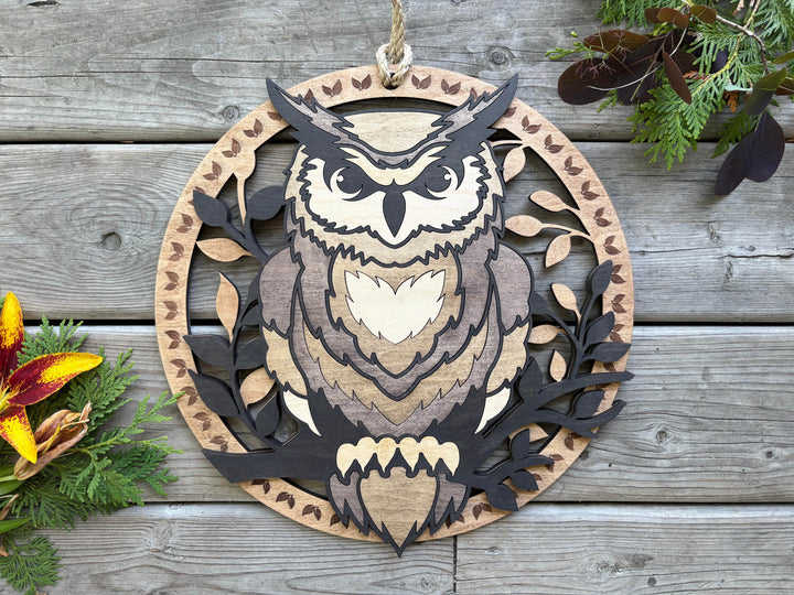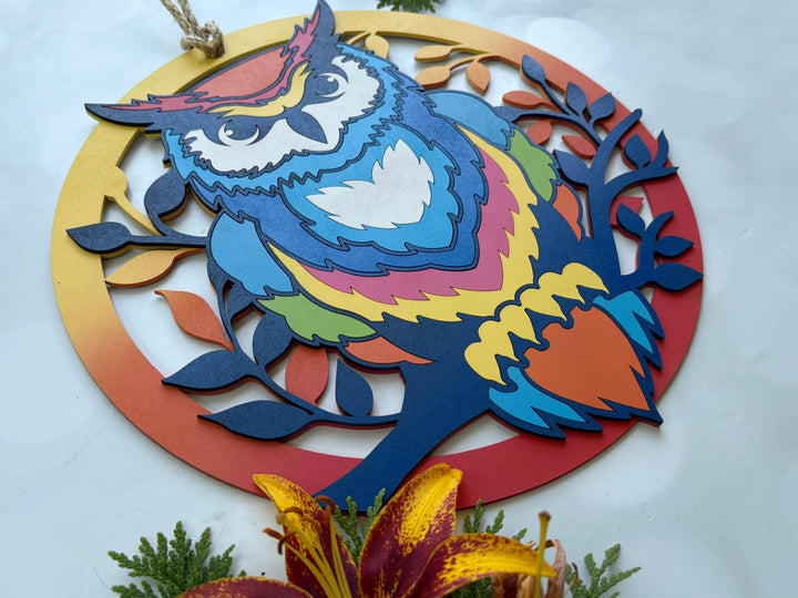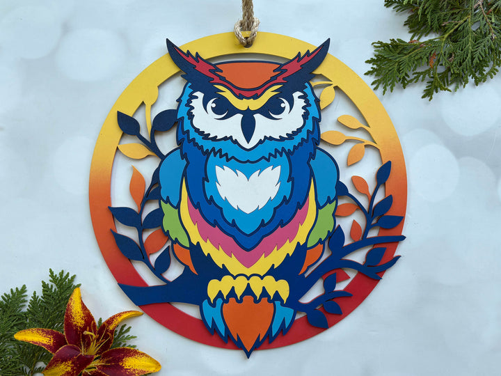 Owl Sign - Layered - Coloring Book Style - Easy Finishing