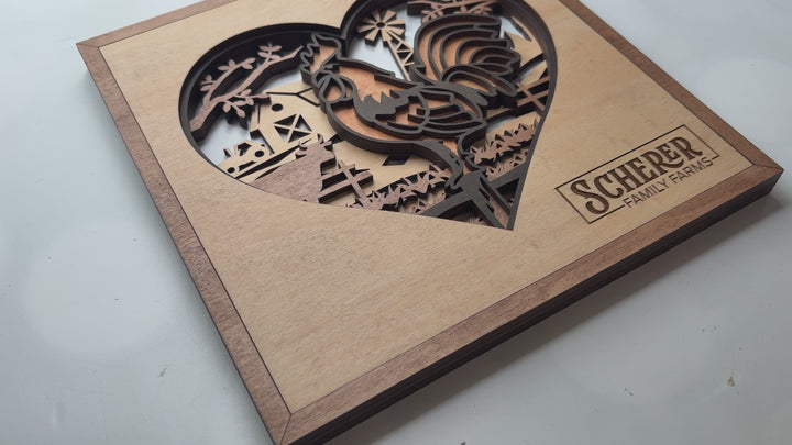 Rooster / Chicken / Farm "Heart" Layered Sign - Laser Ready Files - All Lasers